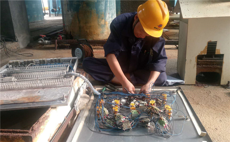 高溫天氣下四車間電工早已汗流浹背