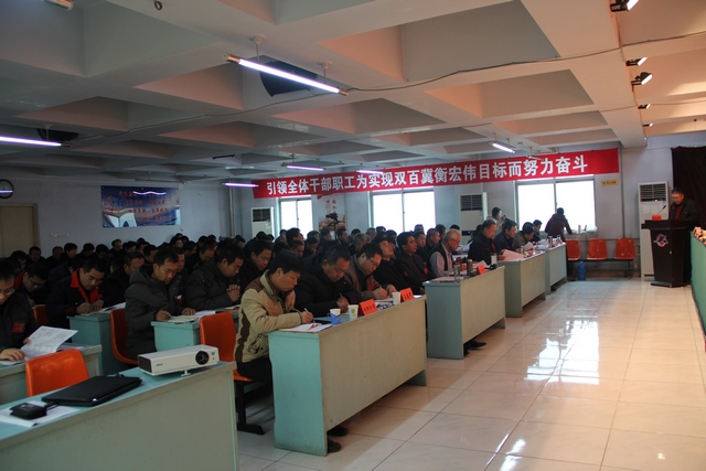 1月11日上午8時(shí),河北冀衡集團(tuán)八屆四次職工代表大會(huì)在雄壯的國歌聲中拉開序幕,各分子公司和各職能處室121名代表肩負(fù)3500名員工的重托齊聚六樓會(huì)議室,共謀冀衡發(fā)展大計(jì)。