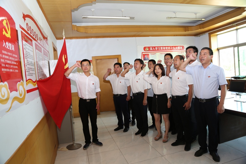 “我志愿加入中國共產黨……為共產主義奮斗終身,隨時準備為黨和人民犧牲一切,永不叛黨?!迸宕鼽h徽的黨員代表在鮮紅的黨旗下重溫入黨誓詞,他們高舉右手、握緊拳頭,莊嚴宣誓,這是一個黨員向組織一生的承諾,也是一個黨員向組織一生的擔當——不忘初心,牢記使命!