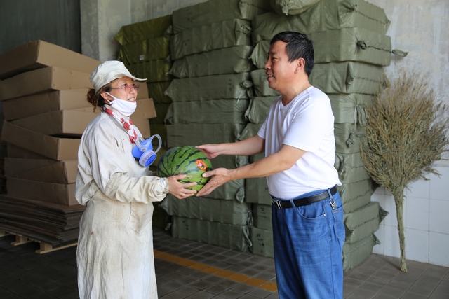 韓主席為我公司壓片崗位職工送來西瓜等防暑用品