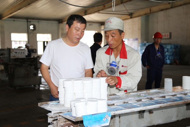 韓主席囑咐車間管理人員做好職工防暑降溫工作