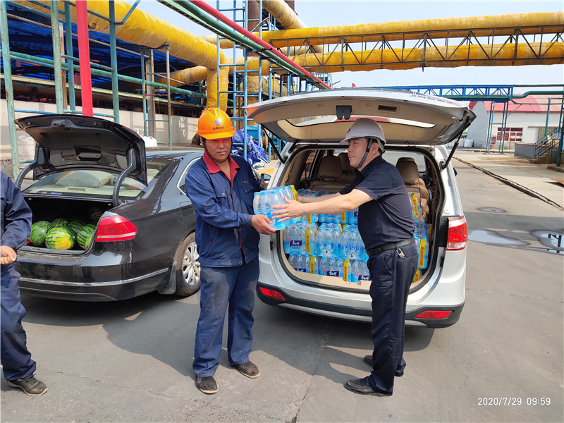 進入三伏天后,一線職工的工作和生活情況時刻牽動著集團領導的心,7月29日上午,集團工會主席韓紅喜一行來到我公司三車間熱解崗位,為工作在一線的職工送去礦泉水、西瓜等解暑物品,韓主席同時囑咐大家在保證做好安全生產工作的同時,一定要照顧好自己的身體,注意勞逸結合和做好防暑工作,同時囑咐現場的管理人員做好職工后勤保障工作,切實保護好高溫天氣下廣大職工的身體健康。