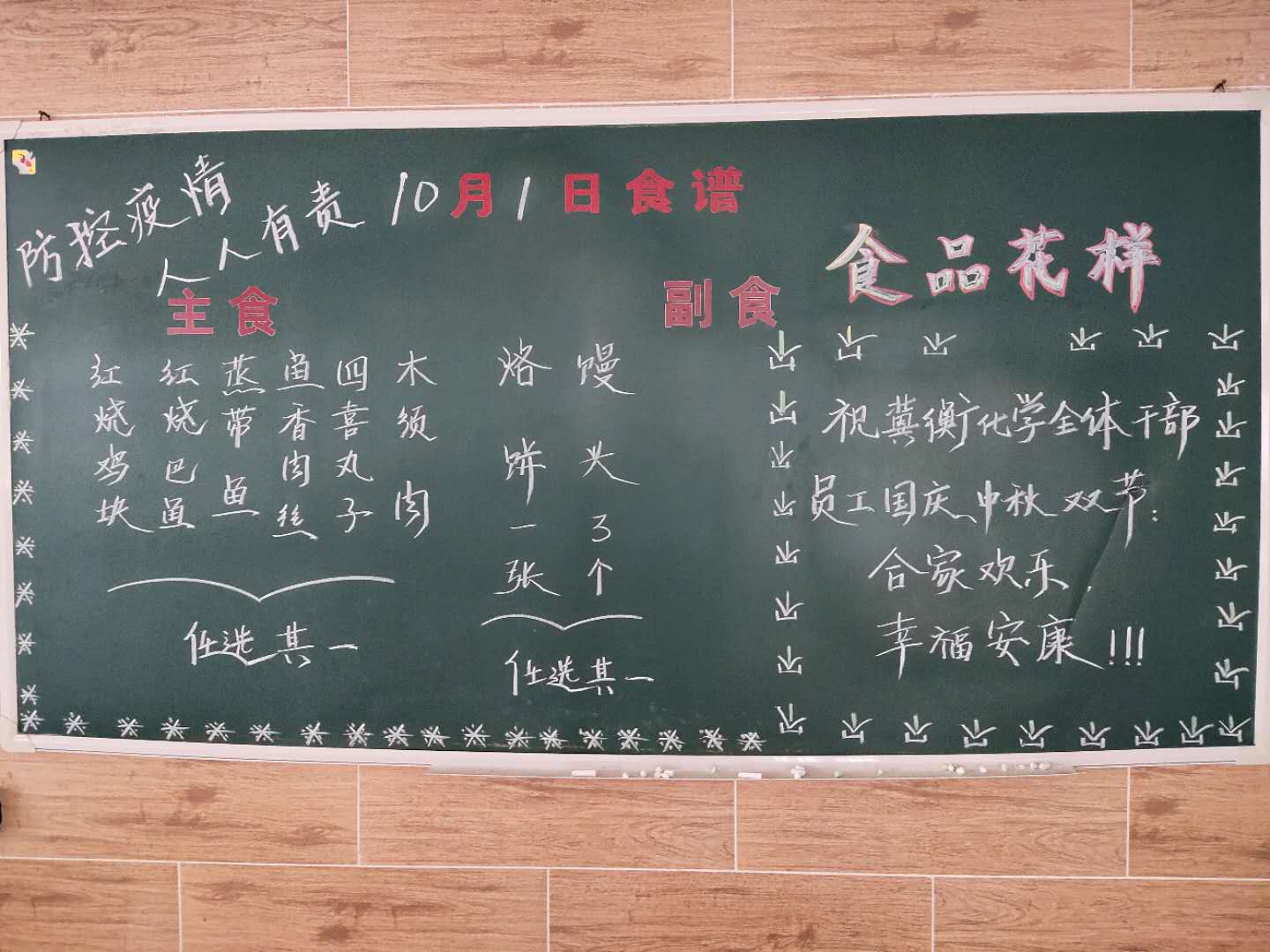 在一年一度的中秋節來臨之時,又逢今年的國慶佳節,在這“雙喜臨門”的美好日子里,為了讓員工吃得開心,吃得舒心,今年國慶、中秋“雙節”前,由辦公室牽頭,對員工愛吃什么菜進行了專題調研,并從飯菜的質量和味道上下功夫,不斷創新烹飪方法,變換新花樣,節日期間,推出了紅燒雞塊、紅燒鲅魚、蒸帶魚、魚香肉絲、四喜丸子、木須肉等菜品,在確保營養充足的情況下,力求營養可口,受到了廣大員工的好評,讓員工吃出好心情,更好地投入到工作中去。